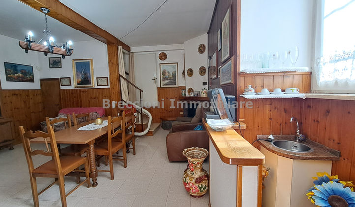 L’abitazione si sviluppa su due livelli con doppio ingresso da un comodo portico coperto, e su piano terra troviamo un ampio soggiorno con camino e caratteristico angolo bar/zona caffe, un ripostiglio, una cucina ed un bagno con doccia e finestra appena rinnovato.