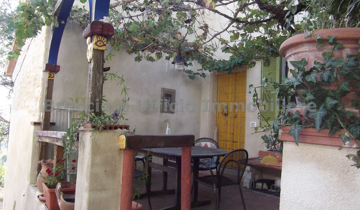 Sul retro dell'abitazione si trova un terreno con alcuni ulivi e alberi da frutto e una piccola struttura in legno ideale come ripostiglio esterno ma anche come casetta dei giochi per i più piccoli.